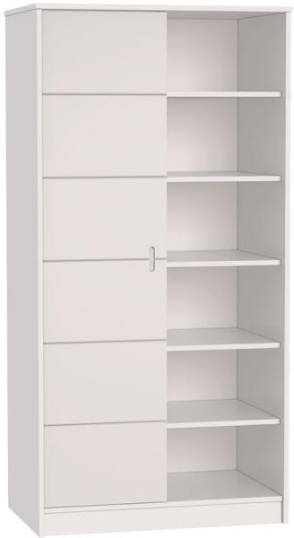 Faktum Alda Iceglossy - 2 osztású szekrény A kedvelt tolóajtós szekrények úgy biztosítanak bőséges tárolóhelyet a szobában hogy kisebb térben is tökéletesen funkcionálnak. A 2 osztású szekrény kiváló választás, hiszen a gyermek kezdeti holmijai elférnek benne. Remekül variálható a bútorcsalád többi elemével, melyből a gyermekek számára megunhatatlan gyerekszoba hozható létre. A szekrény belső pakolófelülete igény szerint alakítható akasztós, vagy polcos kivitelűre. Sőt, ha szükséges, plusz polc rendelésére is van lehetőség. A termék frontja magasfényű festett MDF-ből készül, míg a bútor többi része bútorlapból.