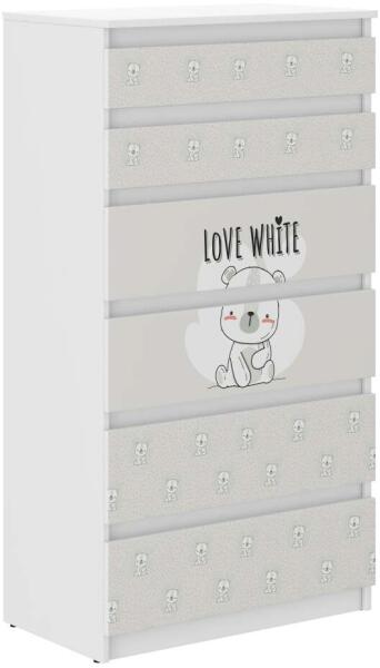 Ifjúsági 5 fiókos Komód - Maci - fehér