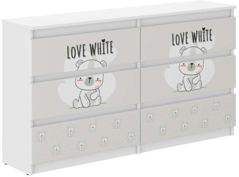 Ifjúsági 6 fiókos Komód 140cm - Maci - fehér